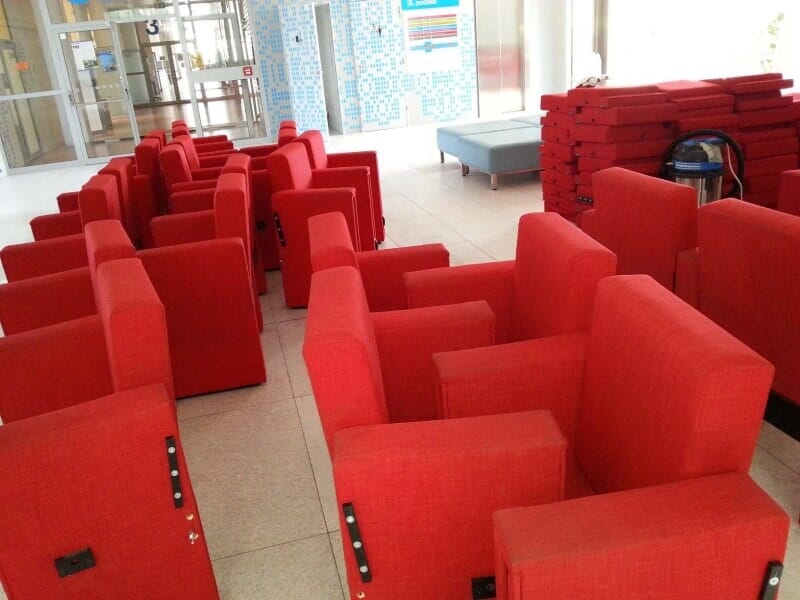 Pomocí kartáčů a vody důkladně vyčistíme sedací soupravy, křesla, židle, matrace, postele atd.